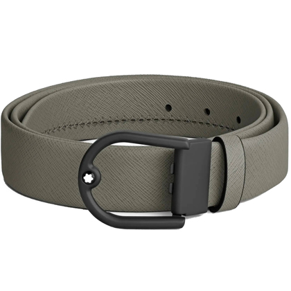 Кожаный ремень 35 мм из кожи серого цвета, пряжка в форме подковы от магазина премиальных ручек Premium Pens в Кисловодске.